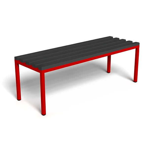 - Free-standing benches are structured on the square metal frame powder coated in RAL 3000 colour,