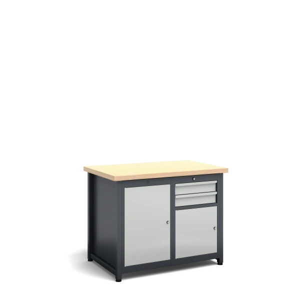 - the top of the workbench is made of plywood 40 mm thick +/- 4 mm,