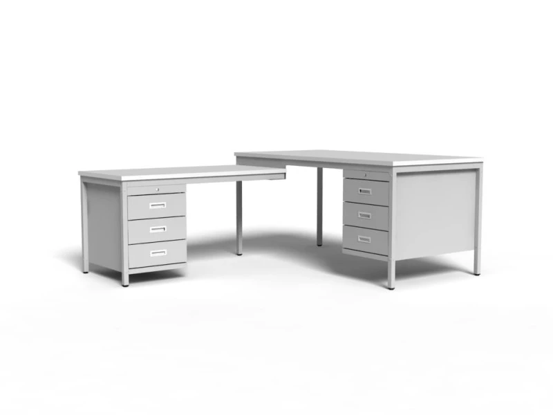Biurko z dostawką z lewej strony, z kontenerkiem przy dostawce oraz kontenerkiem przy biurku BD/L 01/01