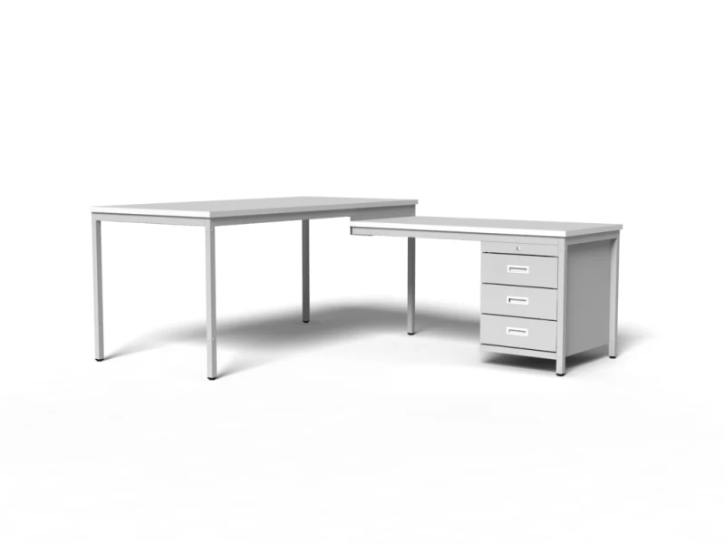 Biurko z dostawką z prawej strony i kontenerkiem przy dostawce