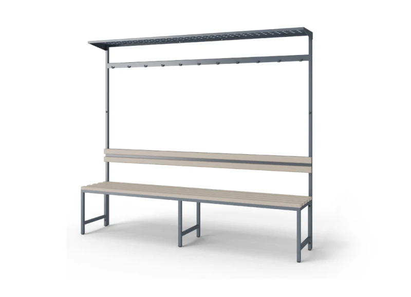 • ławko- wieszak montowany jest na wzmocnionym metalowym stelażu o profilu 25 mm x 25 mm, malowanym na dowolny kolor według palety RAL,