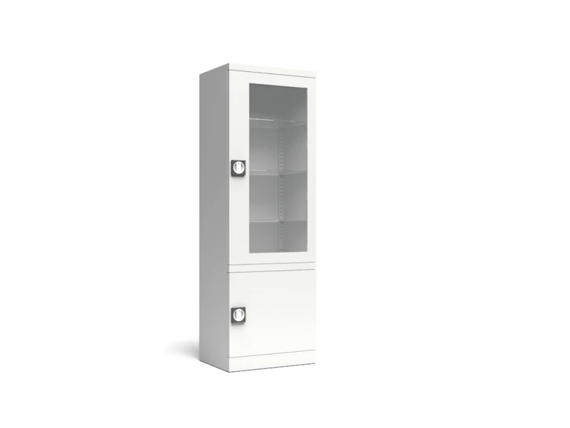 Szafa lekarska 1- skrzydłowa z przeszklonymi drzwiami oraz schowkiem