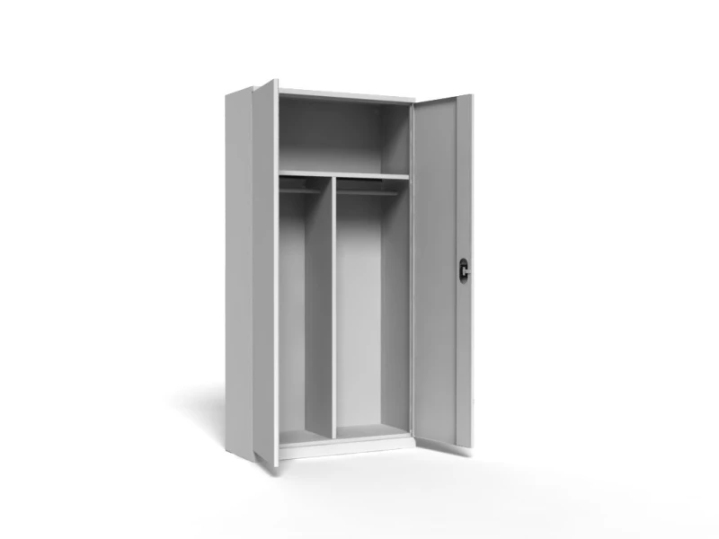 - poniżej stałej półki przedzielona jest przegrodą na dwie części, w których każda posiada drążek na wieszaki,