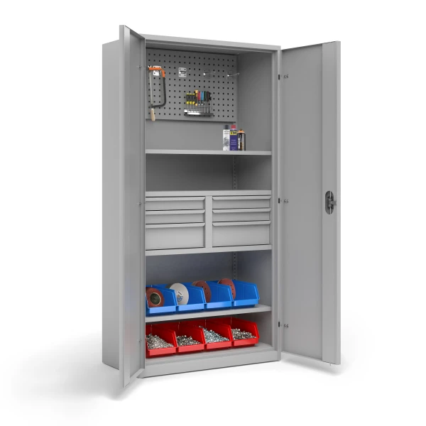 szafa warsztatowa o masywnej konstrukcji z pełnymi drzwiami, z profilem wzmacniającym,