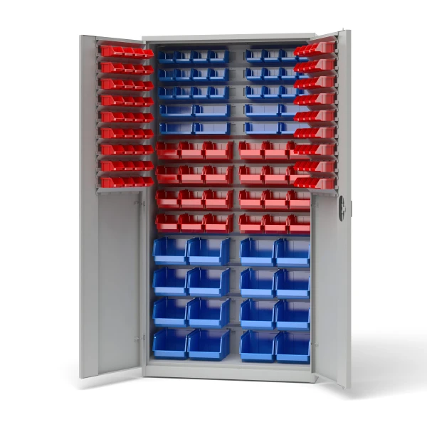 Szafa warsztatowa ze 144 pojemnikami z polipropylenu