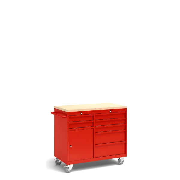 Szuflady zamocowane są na teleskopowych prowadnicach kulkowych (z blokadą zabezpieczającą przed wypadnięciem) zapewniających płynne i lekkie wysuwanie, zamykane są centralnym zamkiem kluczowym.